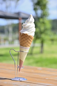 地元酪農家が搾りたての新鮮低温殺菌牛乳から作る生ソフトクリーム。