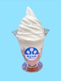 ※季節のフェア期間限定で、いちご・柿などの果肉やピューレソースがかかったソフトクリームも販売しています。